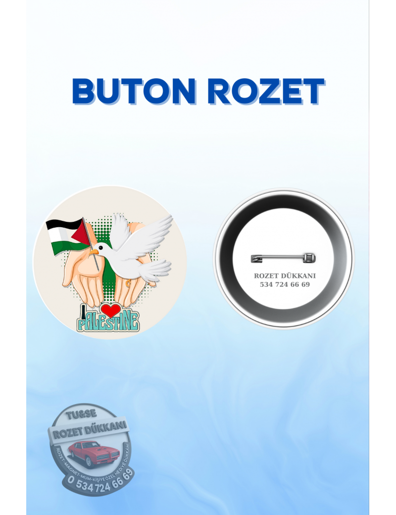 Filistin temalı anlamlı rozet, dayanışma ve farkındalık mesajı vermek isteyenler için özel olarak tasarlanmıştır. Günlük kullanım, etkinlikler, toplu organizasyonlar ve hediyelik amaçlı tercih edilebilir. Canlı baskı kalitesi ve sağlam yapısı sayesinde uzun süreli kullanım sunar. Çanta, mont, ceket ve şapkalarda rahatlıkla kullanılabilir.