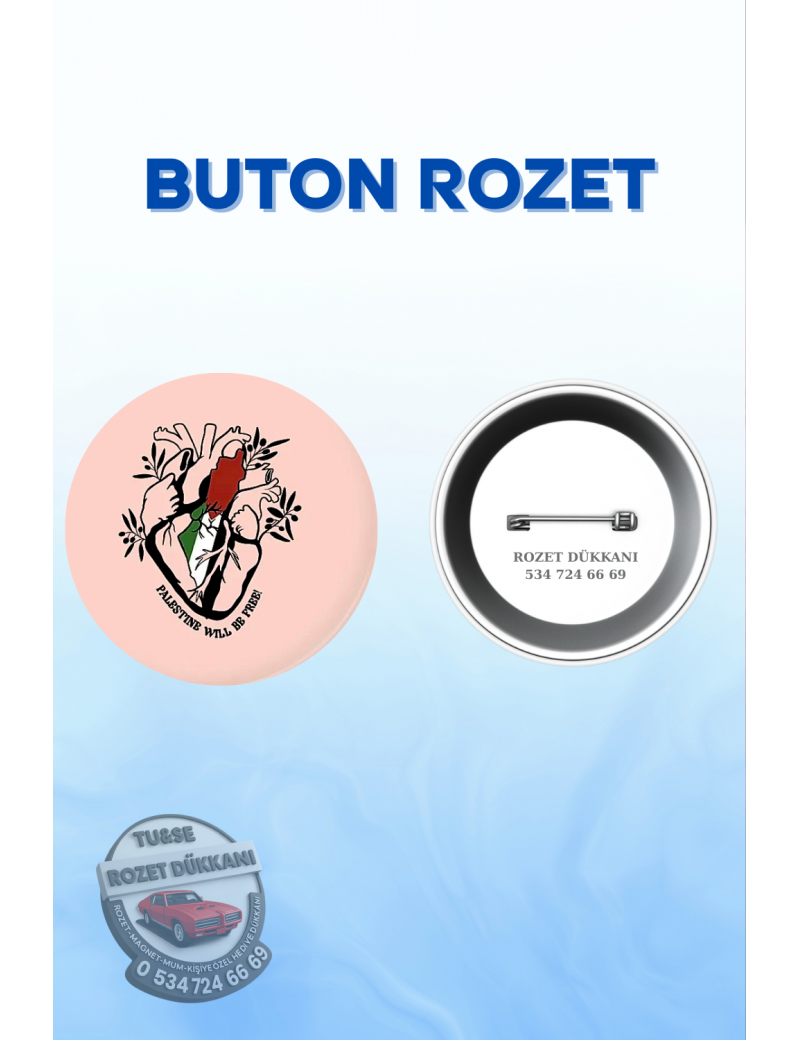 Filistin temalı anlamlı rozet, dayanışma ve farkındalık mesajı vermek isteyenler için özel olarak tasarlanmıştır. Günlük kullanım, etkinlikler, toplu organizasyonlar ve hediyelik amaçlı tercih edilebilir. Canlı baskı kalitesi ve sağlam yapısı sayesinde uzun süreli kullanım sunar. Çanta, mont, ceket ve şapkalarda rahatlıkla kullanılabilir.