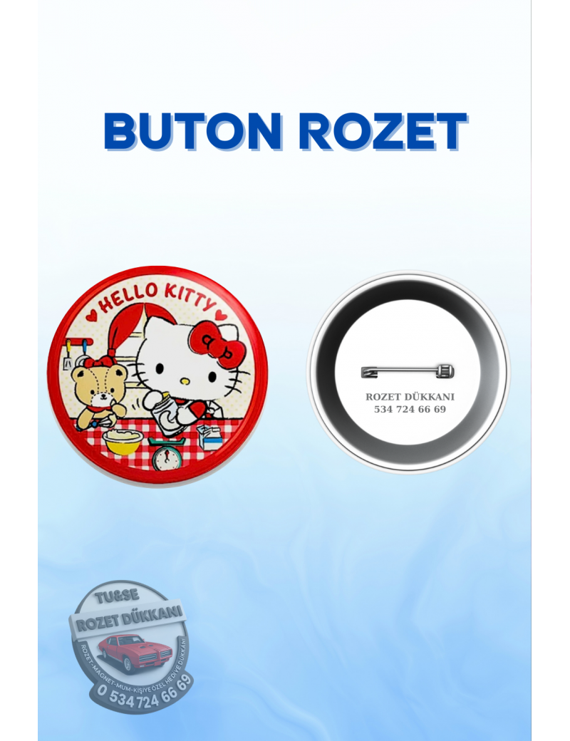 Hello Kitty temalı sevimli rozet, ikonik karakter tasarımıyla her yaştan kullanıcıya hitap eder. Renkli ve tatlı görünümü sayesinde çanta, mont, ceket ve kalemlik üzerinde şık bir aksesuar olarak kullanılabilir. Günlük kombinlere eğlenceli bir dokunuş katar, koleksiyonluk ve hediyelik olarak da tercih edilir.