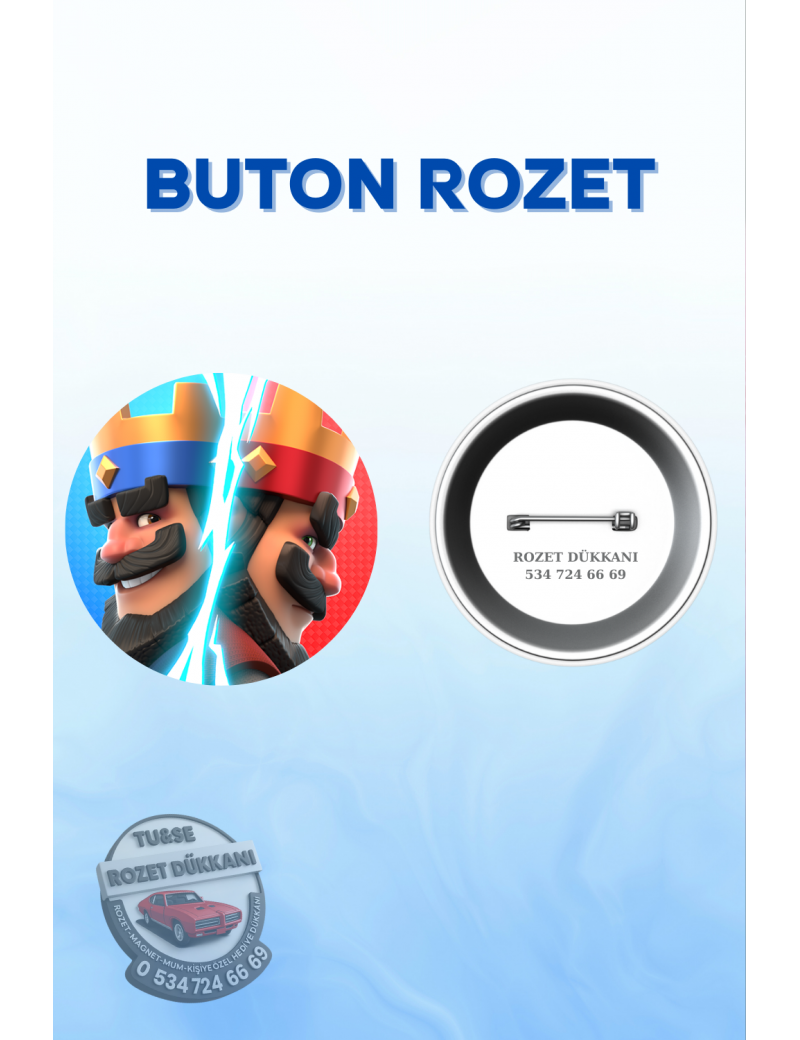 Clash Royale temalı rozet, popüler mobil oyun dünyasının sevilen karakterlerinden ilham alınarak tasarlanmıştır. Oyun tutkunları için ideal olan bu rozet; çanta, mont, ceket ve kalemlik gibi alanlarda rahatlıkla kullanılabilir. Dayanıklı metal yapısı ve yüksek kaliteli baskısı sayesinde uzun süre canlı ve net görünümünü korur. Günlük kullanım, hediye ve koleksiyon için uygundur.