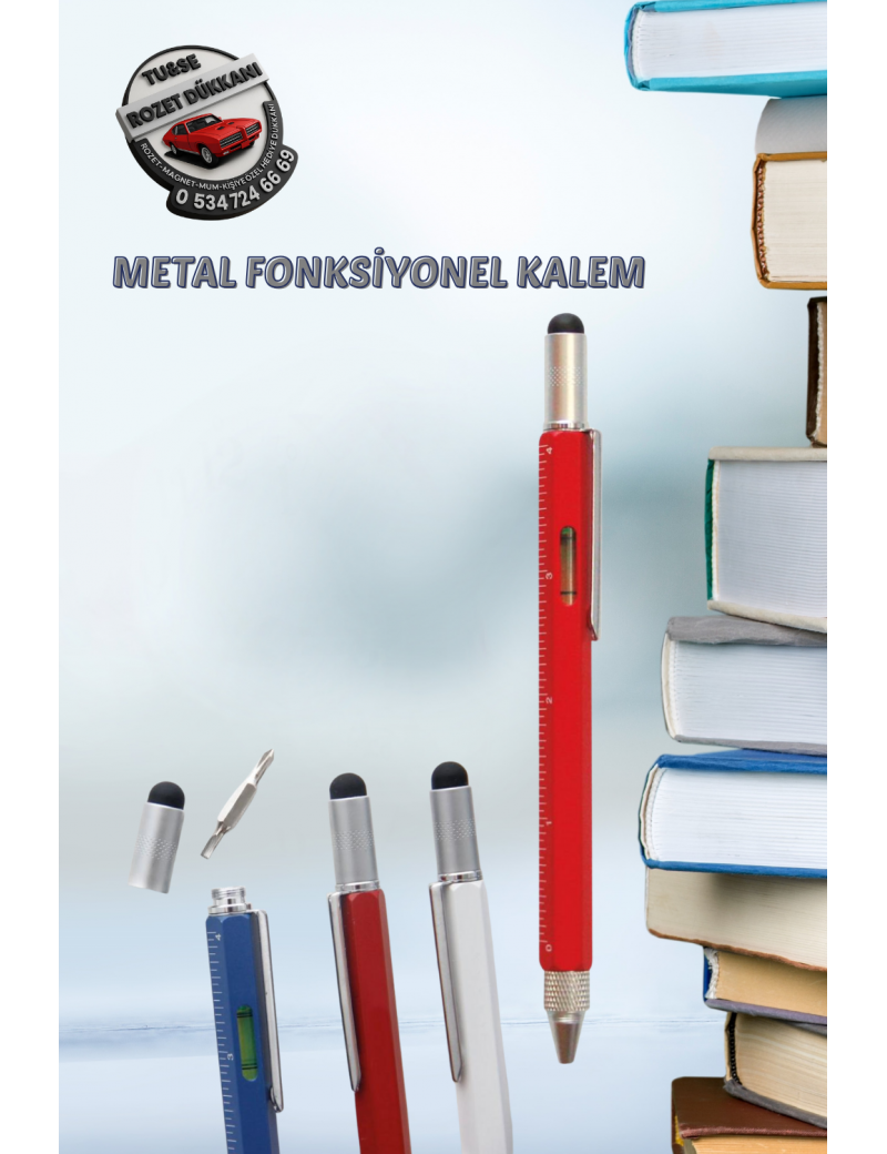 Ürün; su terazisi, düz ve yıldız tornavida uçları ile dokunmatik ekran kalemi özelliklerine sahiptir. Kalem üzerine istediğiniz isim baskısı yapılabilmektedir. Kurumsal promosyonlar, ofis kullanımı ve özel gün hediyeleri için idealdir.