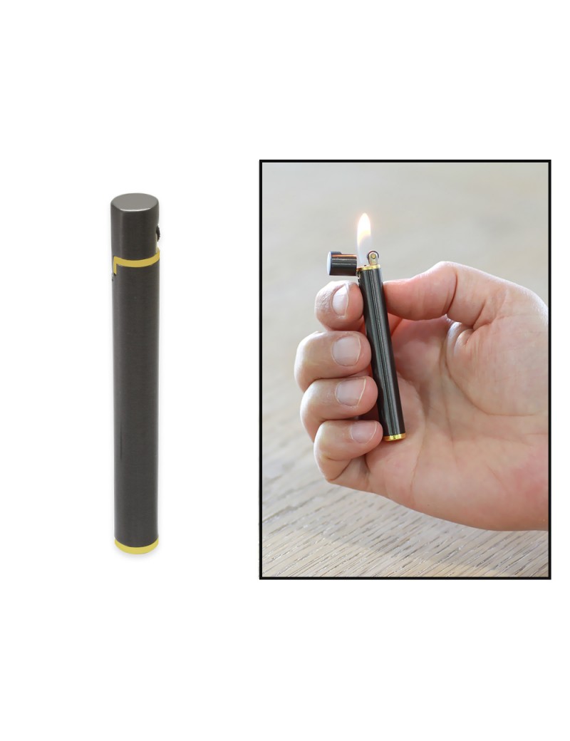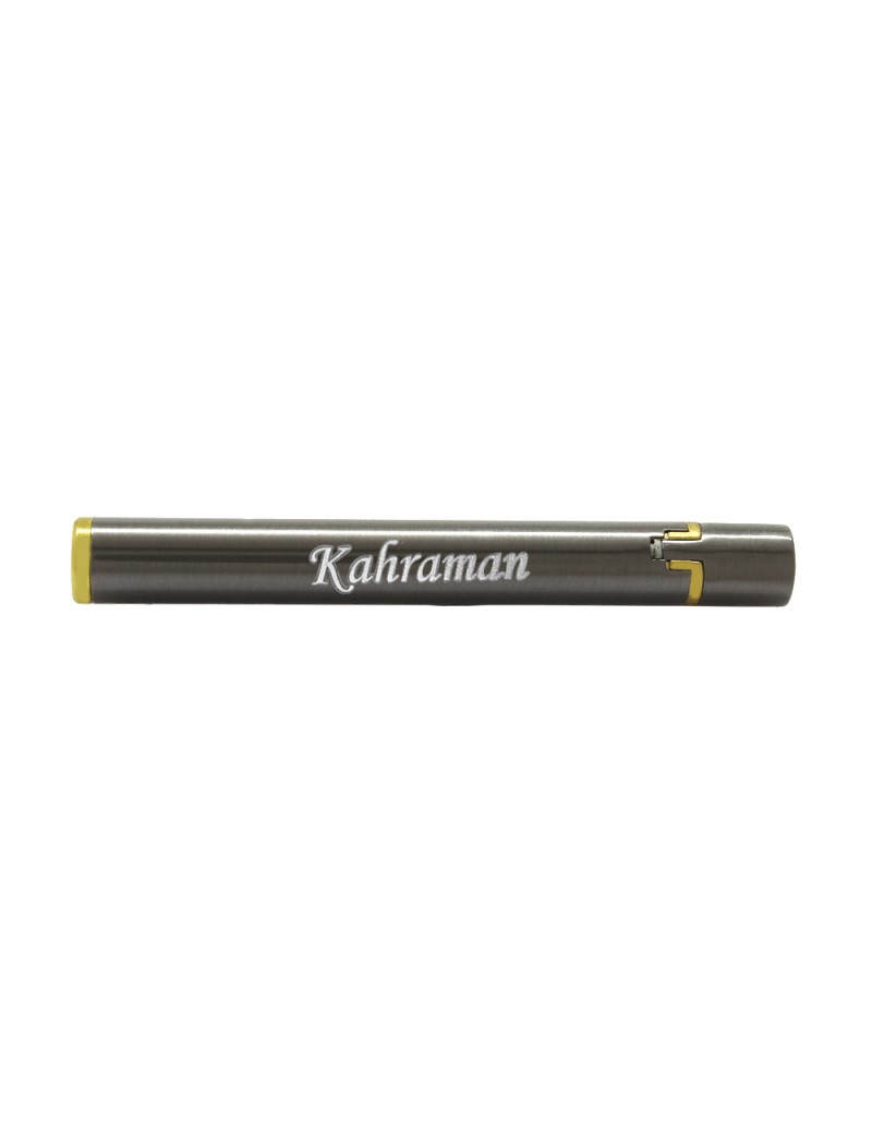 Şık ve gösterişli tasarımıyla öne çıkan Füme Renk Taşlı Kalem Model Çakmak, özel günlerde hediye edilebilecek prestijli ve kullanışlı bir üründür. Gövdesine isim veya kısa yazı baskısı yapılarak kişiye özel hazırlanır. Taşlı detayları sayesinde klasik çakmak modellerinden ayrılır.