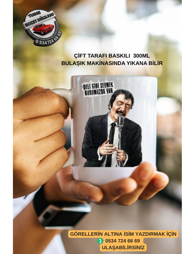 Deli Gibi Sevmek – Müslüm Gürses temalı kupa bardak, müzik ve nostalji tutkunları için özel olarak tasarlanmıştır.