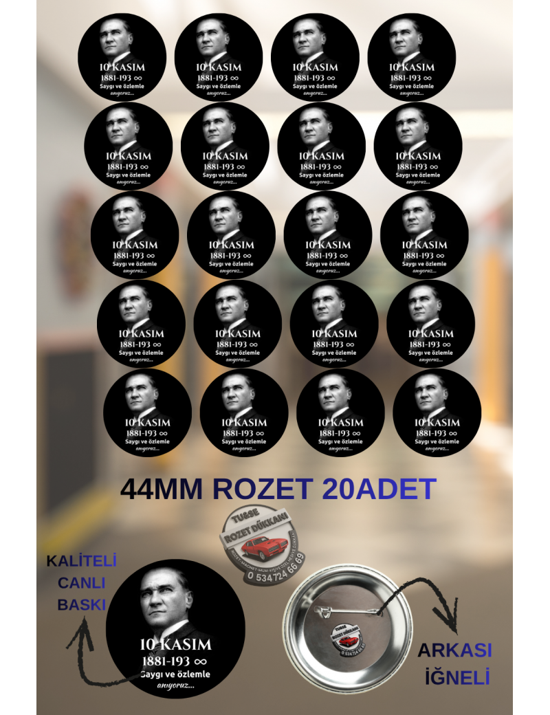 10 Kasım Atatürk Rozetleri, Ulu Önder Mustafa Kemal Atatürk’ü anmak için özel olarak tasarlanmıştır.