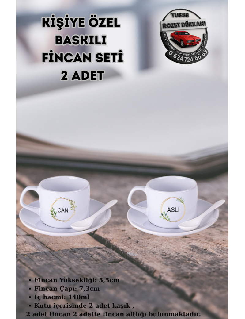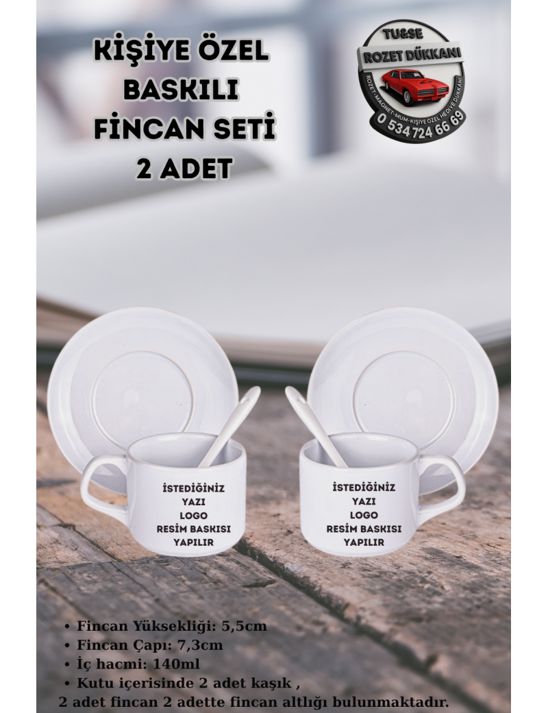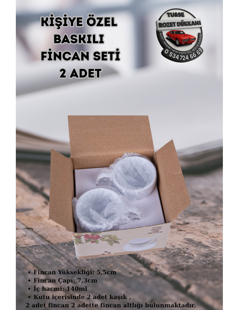 ✔ 2 adet porselen fincan, 2 adet tabak ve 2 adet kaşık