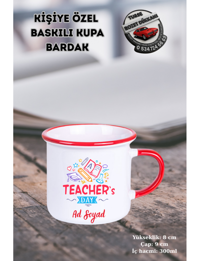 Kupada yer alan özel Teacher’s Day tasarımı altına dilediğiniz isim eklenerek tamamen kişiye özel hale getirilebilir.