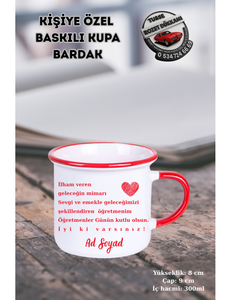 Sipariş sonrası öğretmeninizin ismini veya özel mesajınızı bize iletin, tamamen kişiye özel bir kupa hazırlayalım.