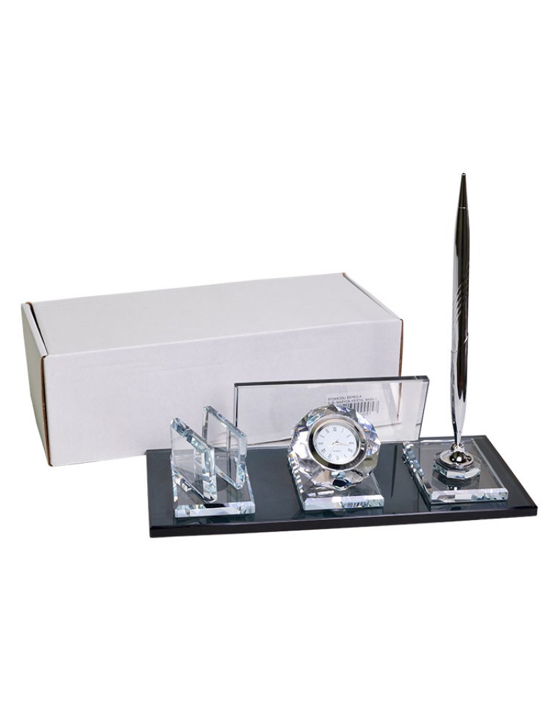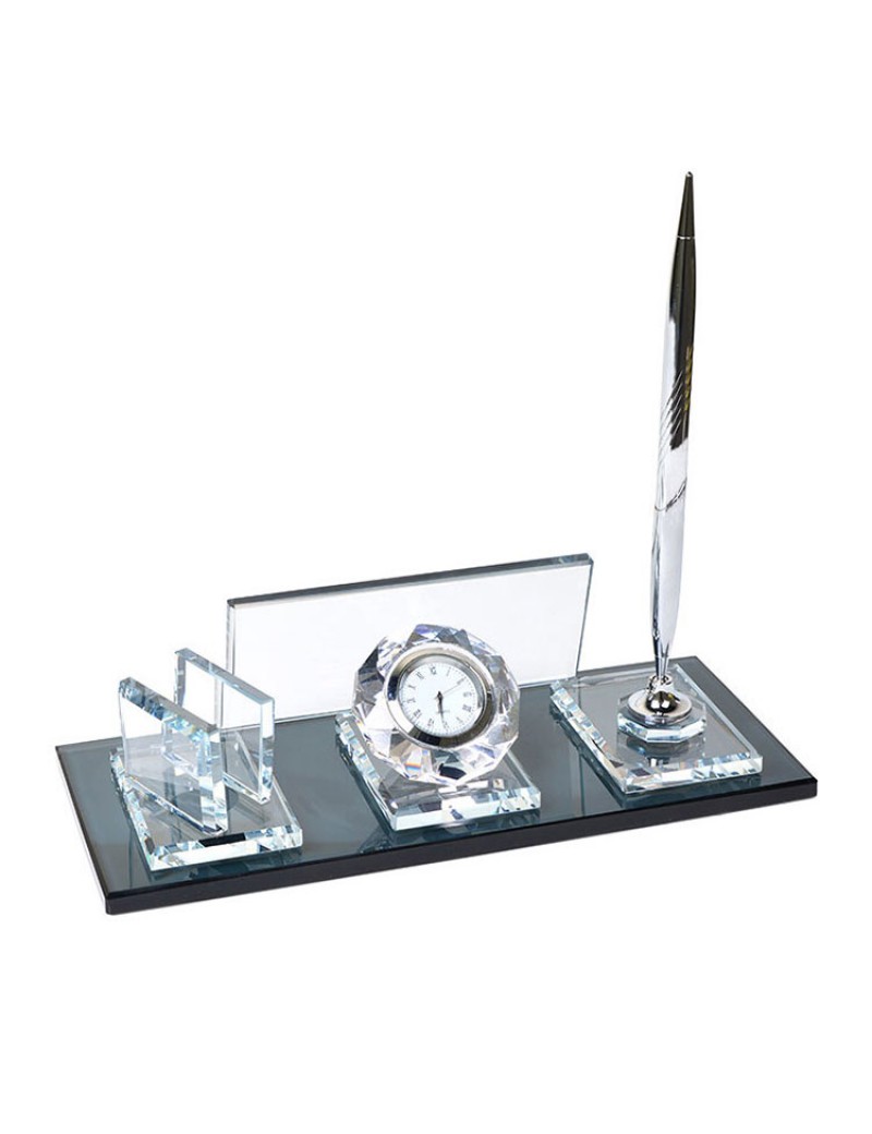 Ürün üzerinde kartvizitlik, saat ve gümüş kalem aksesuarları bulunmaktadır. Saatin pili değiştirilebilir ve ömrü yaklaşık 2 yıldır. Saat ayarını kolayca açarak yapabilirsiniz. Masanızda hem dekoratif hem de fonksiyonel bir çözüm sunar.