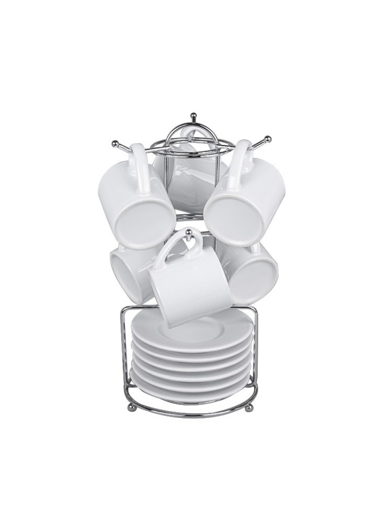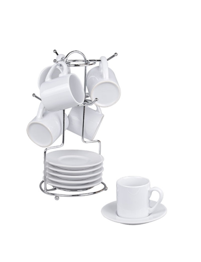 Şık ve kullanışlı Salkım Standlı Türk Kahve Fincan Takımı, 6 parçadan oluşan beyaz porselen fincan ve salkım standıyla sunulur. Üzerine istediğiniz resim, yazı veya logo baskısı yapılabilir, tamamen kişiye özel hale getirilebilir.