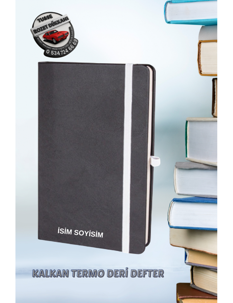 Sade ve şık tasarımıyla öne çıkan Beyaz Kalkan Termo Deri Defter, ajanda, günlük not defteri ve kurumsal promosyon hediyesi olarak ideal bir üründür. Lazer baskı uygulaması sonrasında kapak rengi beyaz görünümünü korur. İsim, logo veya özel yazı ile kişiye özel olarak hazırlanabilir.