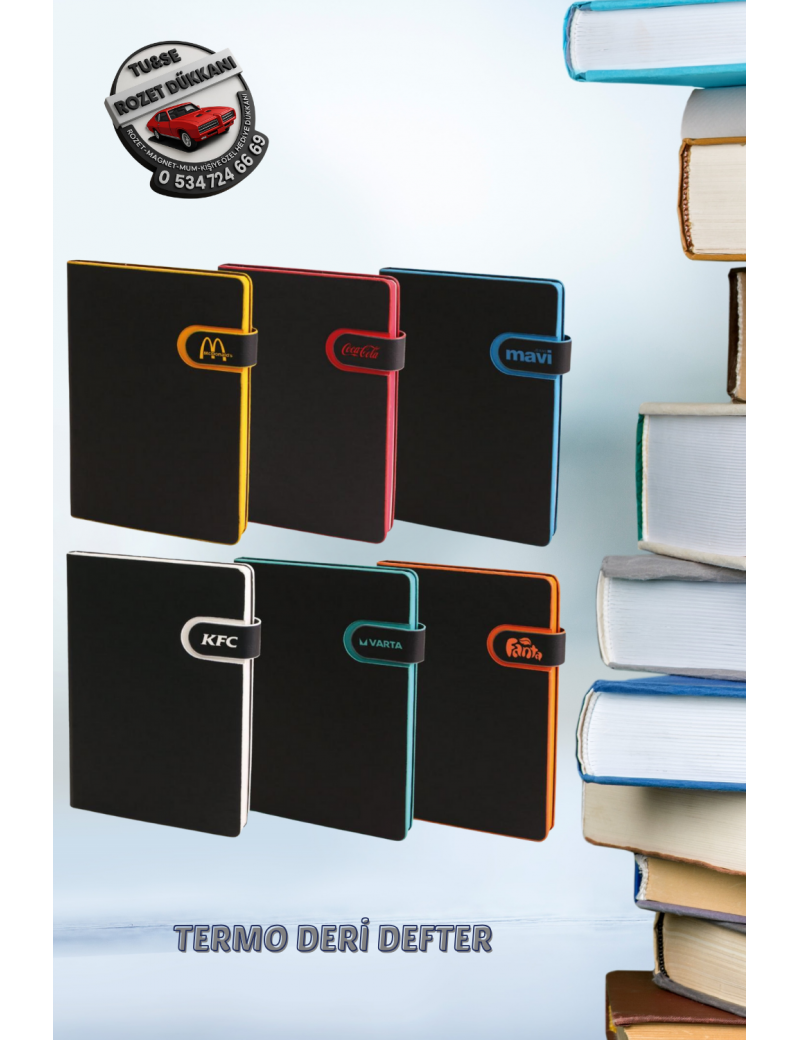 Şık ve kullanışlı tasarımıyla öne çıkan Termo Deri Defter, günlük notlar, ajanda kullanımı ve kurumsal promosyonlar için ideal bir üründür. Defterin toka kısmına uygulanan lazer baskı sonrasında, baskı yapılan alanda kapak rengi belirgin şekilde ortaya çıkar. İsim, logo veya özel yazı ile kişiye özel olarak hazırlanabilir.