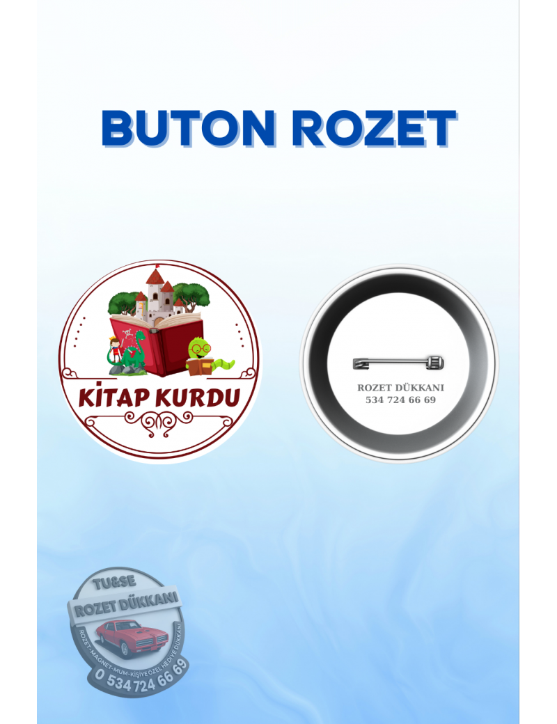 Kitap Kurdu Rozeti 44mm yaka rozeti ile gelir ve her biri renkli, canlı tasarımlara sahiptir.