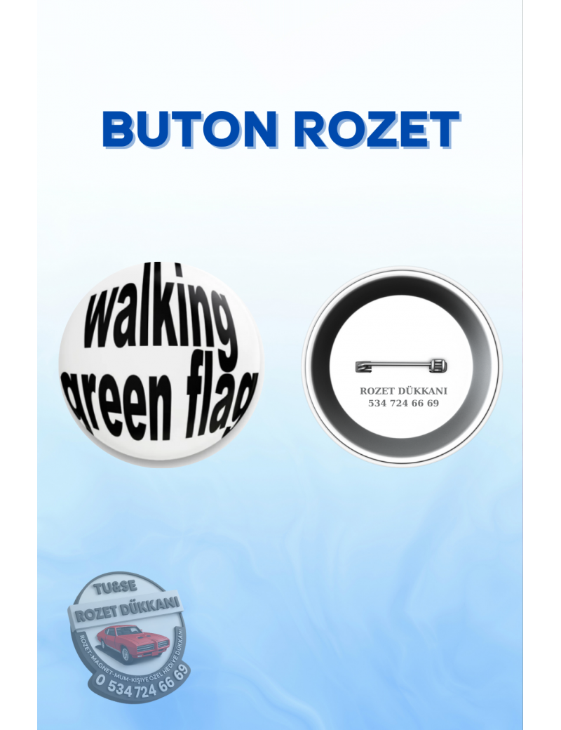 Walking Green Flag yazılı rozet, eğlenceli ve modern tasarımıyla günlük kullanım için ideal bir aksesuardır. Çanta, mont, ceket ve kalemlik üzerinde rahatlıkla kullanılabilir. Minimal ve dikkat çekici yazı tasarımı sayesinde gençler, öğrenciler ve hediye arayanlar tarafından tercih edilir. Günlük kombinlere esprili bir dokunuş katar.