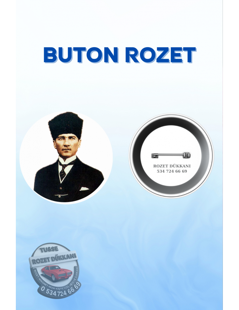 Atatürk temalı rozet, Gazi Mustafa Kemal Atatürk’ün hatırasını ve değerlerini yansıtan anlamlı bir tasarıma sahiptir. Okullarda, resmi günlerde, anma törenlerinde ve özel etkinliklerde kullanılmak üzere idealdir. Metal gövdesi dayanıklıdır, kaliteli baskısı sayesinde uzun süre canlılığını korur. Öğrenciler, öğretmenler ve Atatürk sevgisini taşımak isteyen herkes için özel bir rozet modelidir.