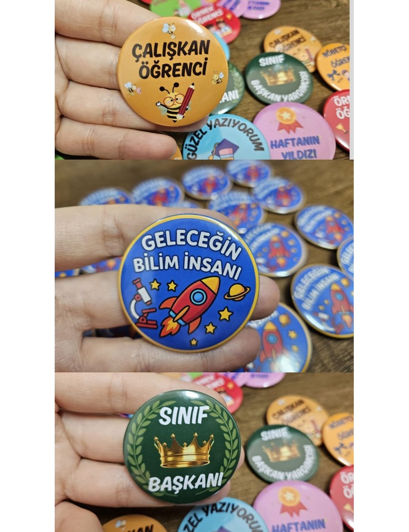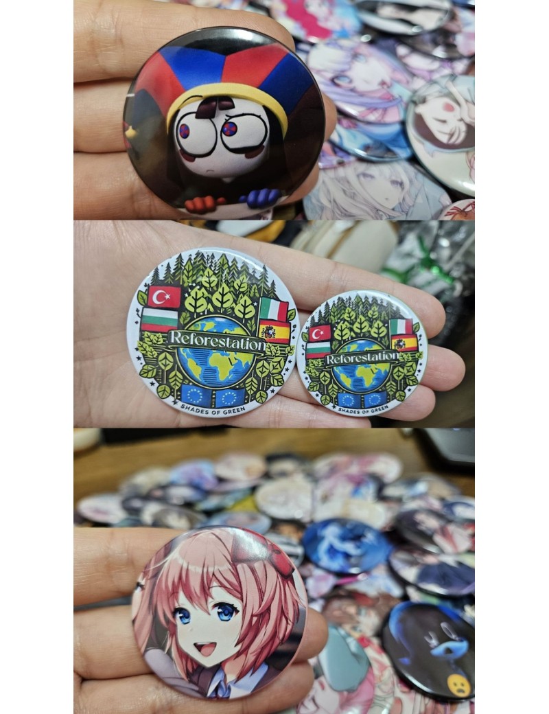 Dilediğiniz fotoğraf, yazı, logo veya çizimi yüksek kaliteli 44mm buton rozetlere baskı yapıyoruz.