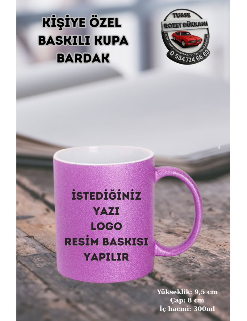 Parlak ve göz alıcı sim dokusu ile dikkat çeken simli mor kupa, tamamen size özel hale getirilebilen bir üründür. Üzerine istediğiniz yazı, logo veya fotoğraf baskısı yapılır. Hem kendiniz hem de sevdikleriniz için özel bir hediye alternatifi sunar.