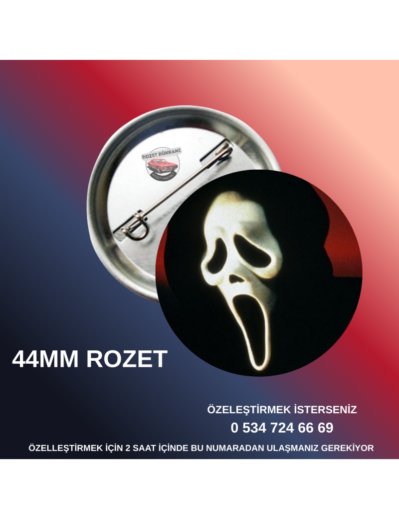Bu tekli Çığlık rozet, iki farklı boyut seçeneğiyle (44mm ve 58mm) çantan, ceketini veya aksesuarlarını süslemek için ideal.